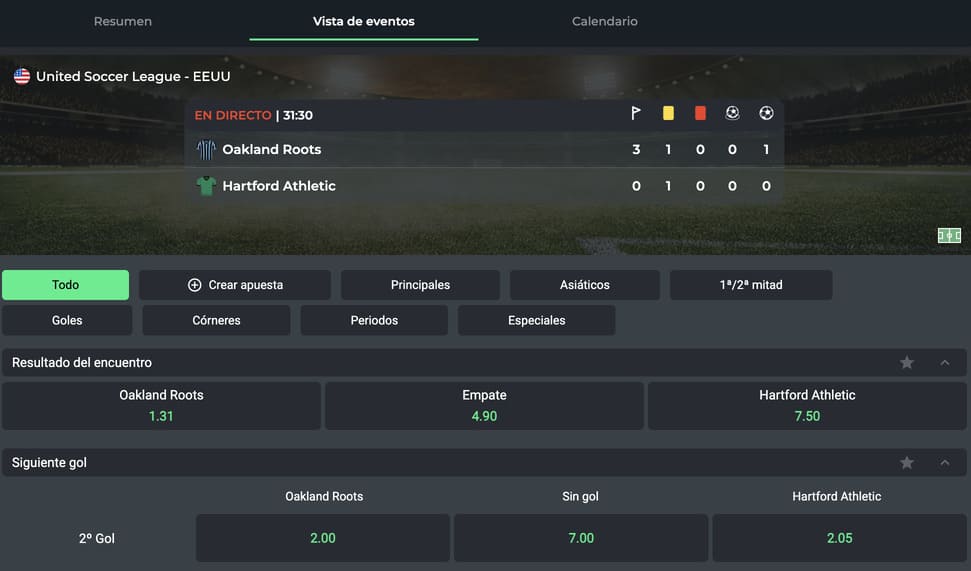 Tienes la opción de elegir cuotas en tiempo real y ver el resultado del evento, pero la acción no se mostrará en video como en otras plataformas.