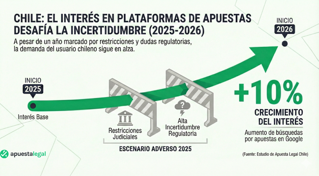 A pesar de los bloqueos de acceso ordenados por la Justicia chilena, el interés por las apuestas online no se contrajo en 2025. Por el contrario, los datos muestran un mercado que siguió creciendo y consolidándose a lo largo del año.
